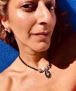 Adina Reyter Women’s Jewelry Chunky Twisted Black Satin Cord Necklace For Big Beads