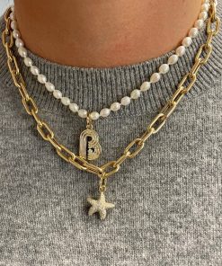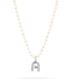 Adina Reyter Women’s Jewelry Chunky Seed Pearl Initial Necklace In Sterling Silver