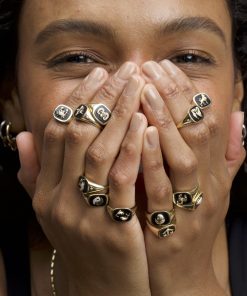 Adina Reyter Women’s Jewelry Zodiac Ceramic + Diamond Gemini Signet Ring
