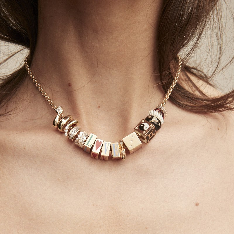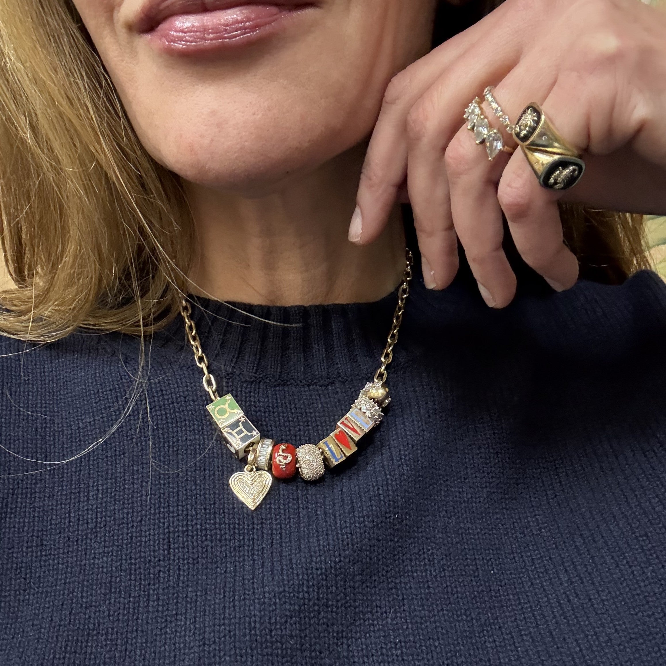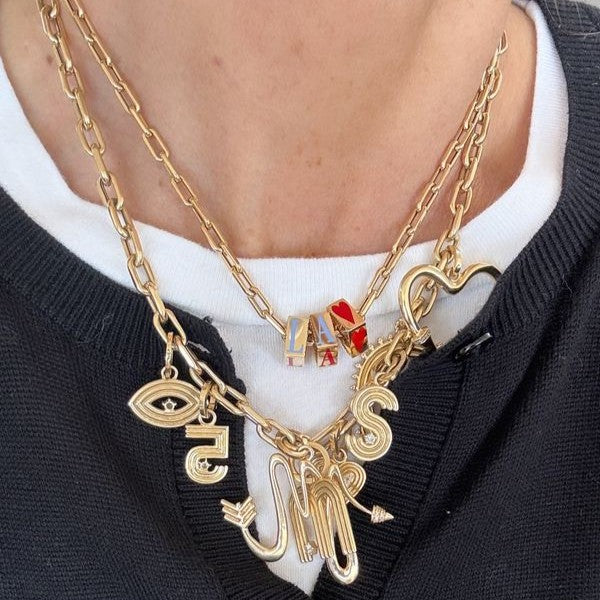 There are so many ways to wear our Ceramic Fluted Initial Big Beads – Spell it out, add the initials that are meaningful to you, or wear just one. Handcrafted out of 9K yellow gold, with fluted sides, these initials add joy to your everyday. Each side offers alternating ceramic colors – red, green, arctic blue and cobalt blue – for a truly optimistic and meaningful expression of your world.