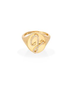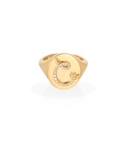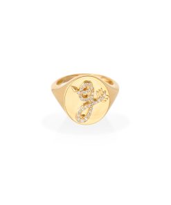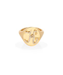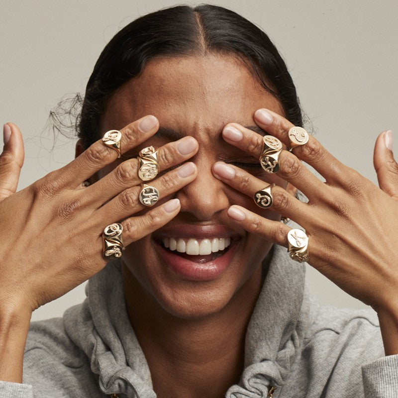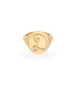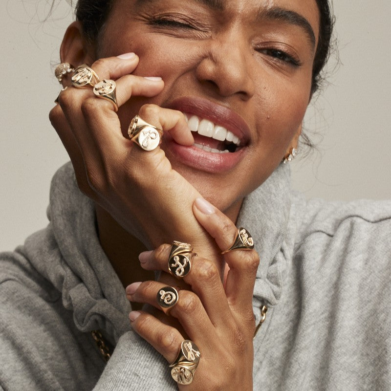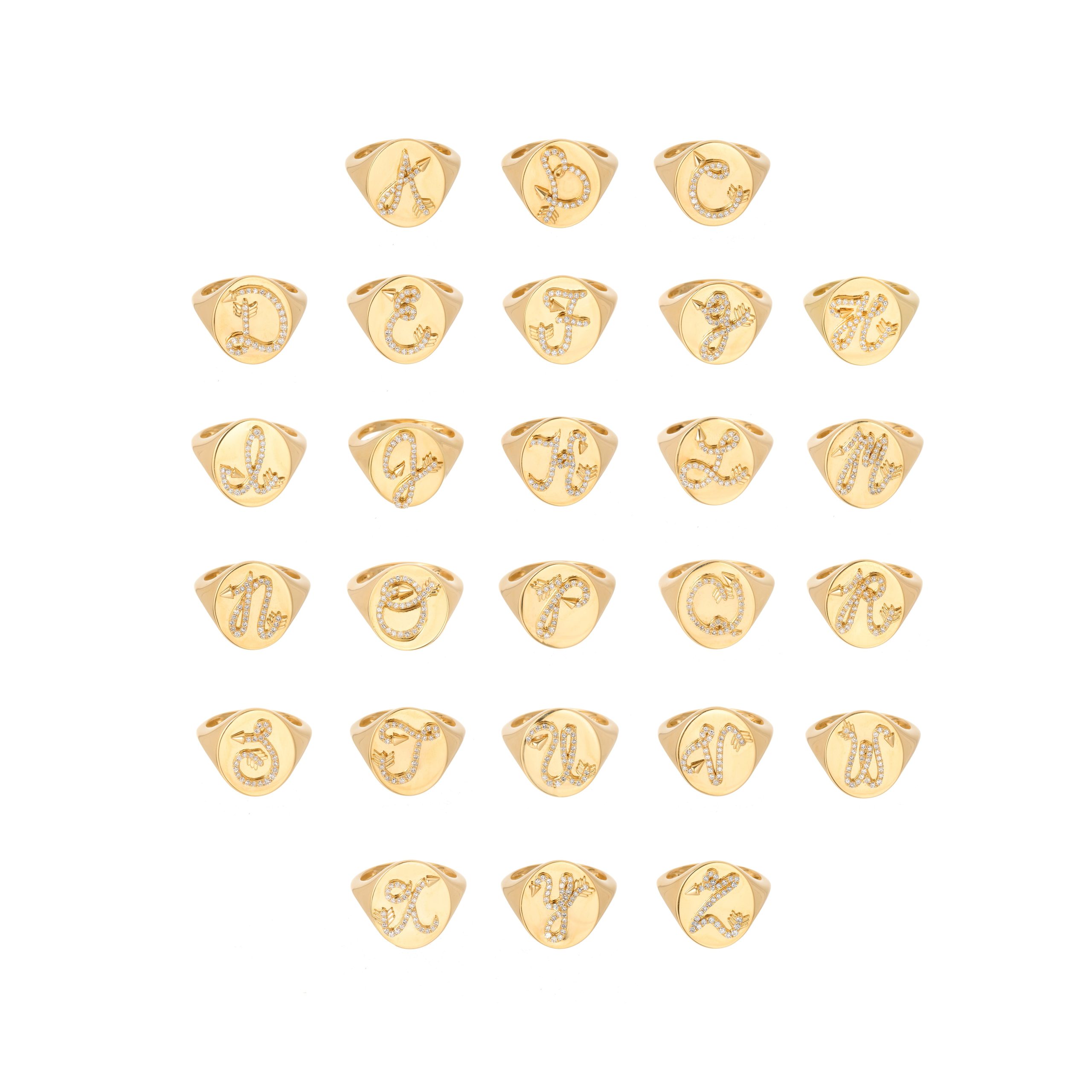 Handcrafted in solid 14k yellow gold, our Diamond Arrow Initial Signet Ring features your chosen initial wrapped in a pavé diamond arrow—symbolizing strength, movement, and protection. Inspired by our bestselling Diamond Arrow Initial Charms, this made-to-order ring (available in sizes 3–8) adds a refined personal touch to your everyday stack. We love it worn as a pinky ring or stacked with our Zodiac Signet Rings.