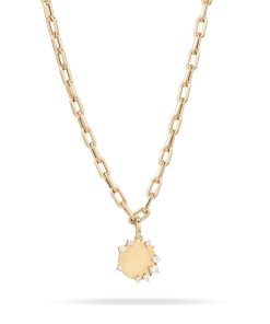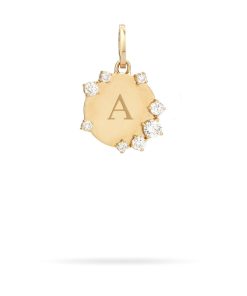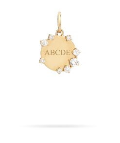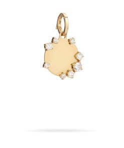 14k yellow gold hinged round dog tag charm with lab grown diamonds.