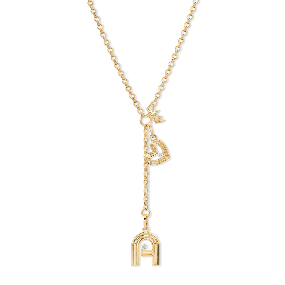 Introducing our For Love Lariat Necklace—a ready-to-wear lariat with meaning built in. Our new Y-style necklace features our bestselling 14k solid gold Groovy Heart Hinged Charm and handset pavé diamond Crown Big Bead, all strung on our bold 14k yellow gold Rolo chain—each link meticulously hand-forged by skilled artisans for a lightweight feel and effortless everyday wear.