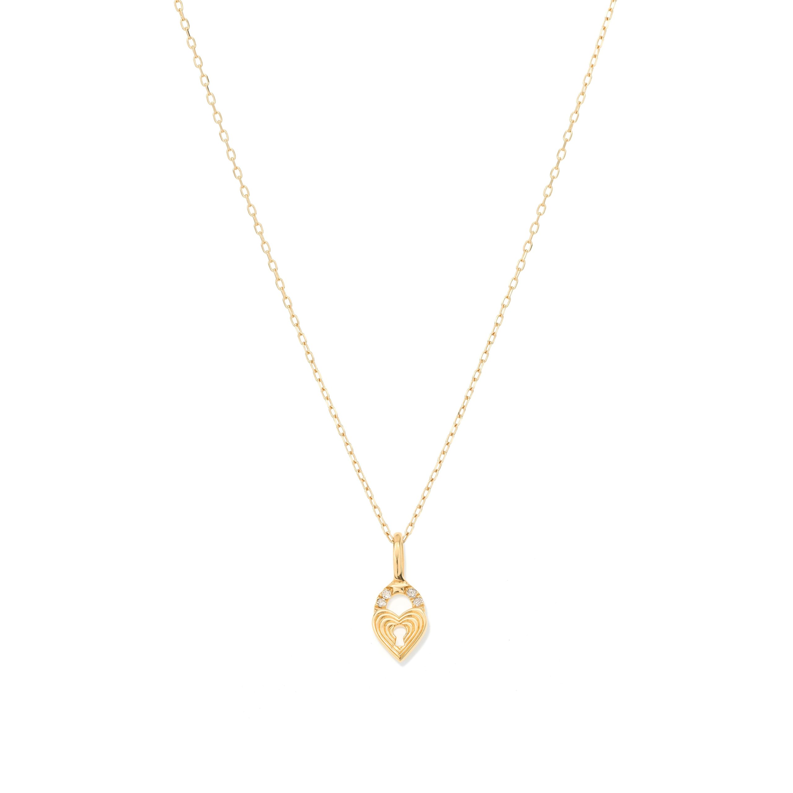 A symbol of connection, meaning, and love. Our petite heart-shaped key is handcrafted in solid 9k yellow gold with the signature grooved texture from our bestselling Groovy Collection, hand-set pavé diamonds bring a subtle shimmer to this meaningful piece. Designed to complement our Signature Chain and pair beautifully with the Groovy Diamond Heart Padlock Mini Bead Charm. Wear it alone or layered with additional Mini Beads that unlock your story.