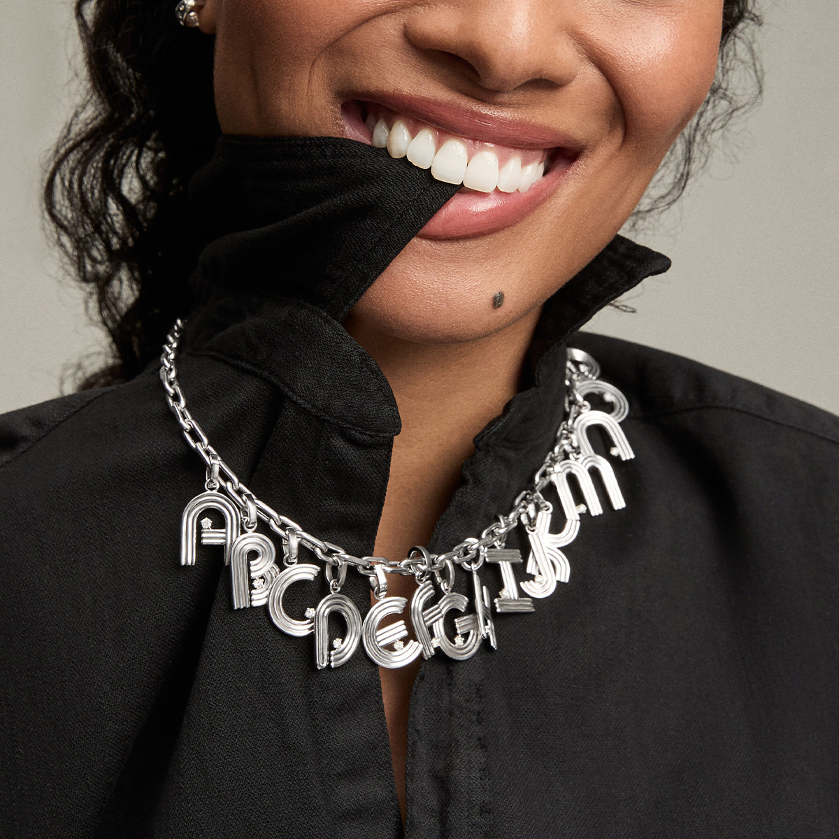 Adina Reyter Women's Jewelry Groovy Diamond Initial Hinged Charm In Sterling Silver quantity