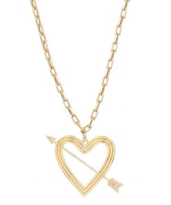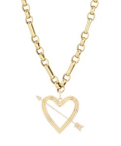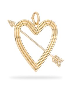 14k yellow gold hinged XL heart + arrow charm with hand-set pavé diamonds.