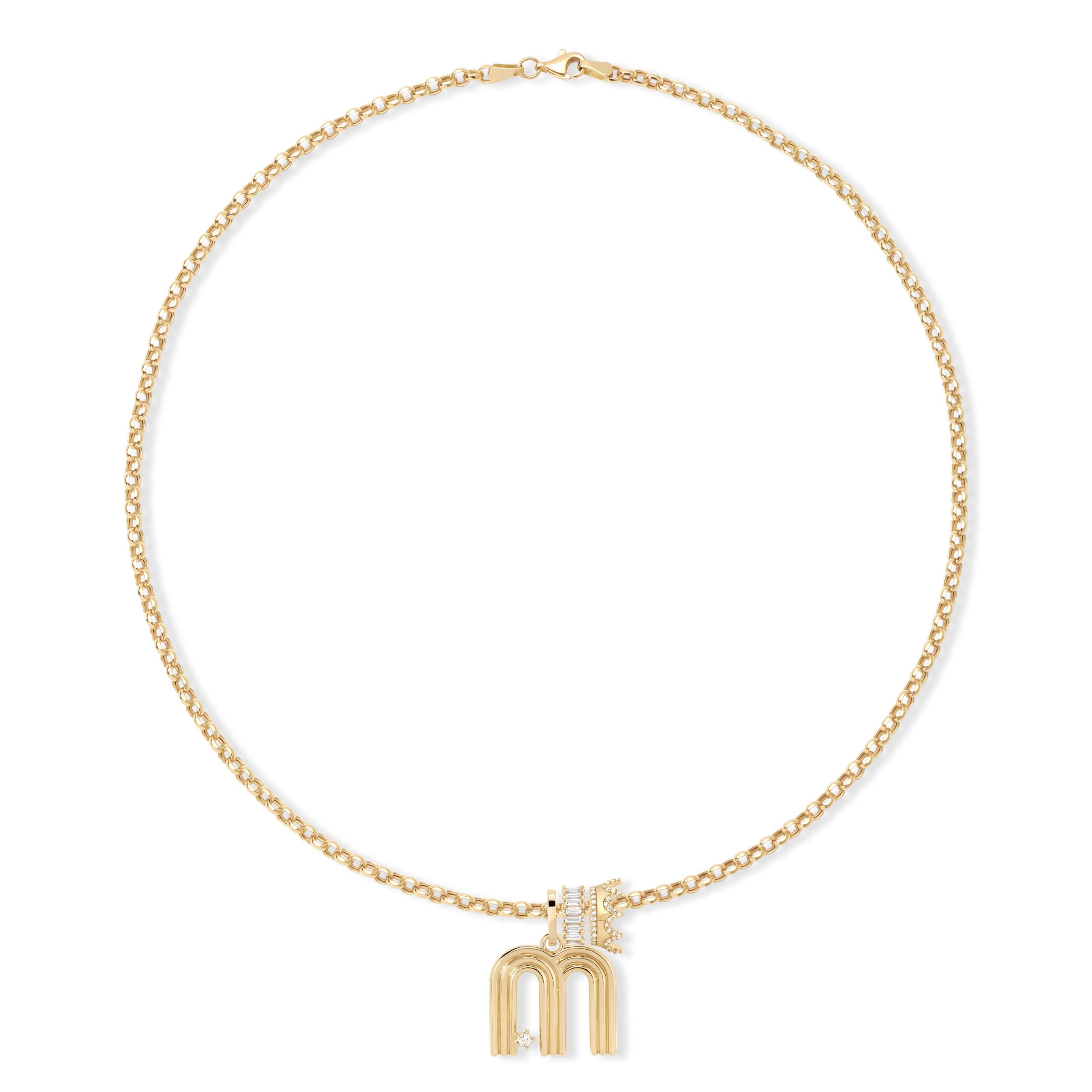 Our original Groovy Diamond Initial Charm takes center stage in this elegant ready-to-wear curation. Inspired by the clean lines of Deco design and the effortless joie de vivre of the 70s, the Groovy Initial is a true AR icon. Here, it is beautifully highlighted with the sparkle of our Diamond Prong Set and Pavé Crown Big Beads, each one handcrafted in solid 14k yellow gold. Assembled by our studio artisans so it arrives ready to wear, this necklace is designed for layering, collecting, and making your own. We love it worn at 16 inches with a Wide Pavé Big Bead added for a final touch of personal style.