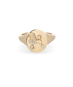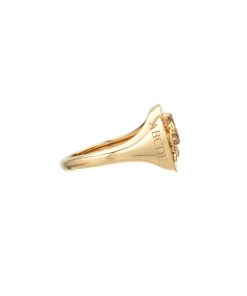 Ruff Ruff! 14k yellow gold signet ring with pave diamond English Bulldog.
