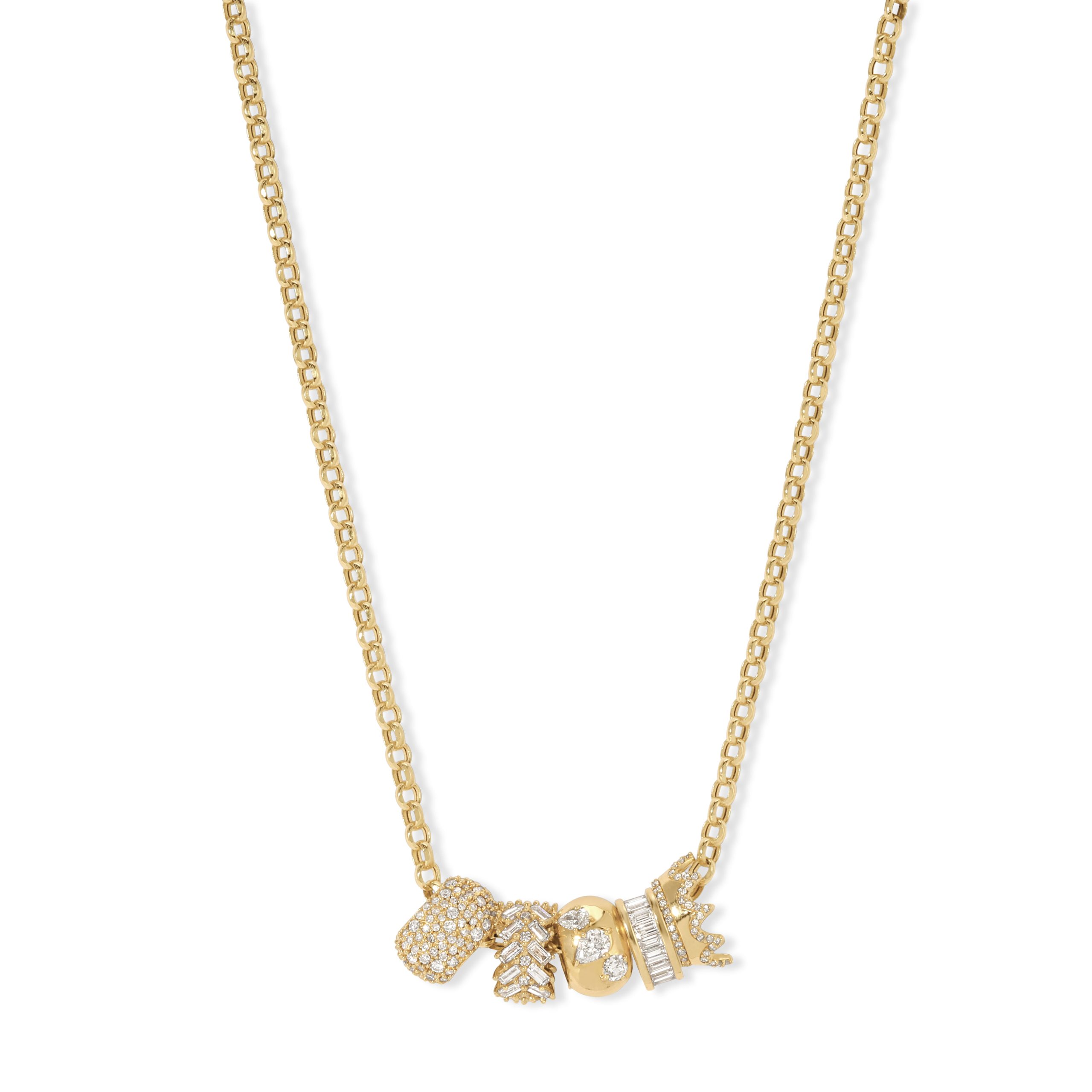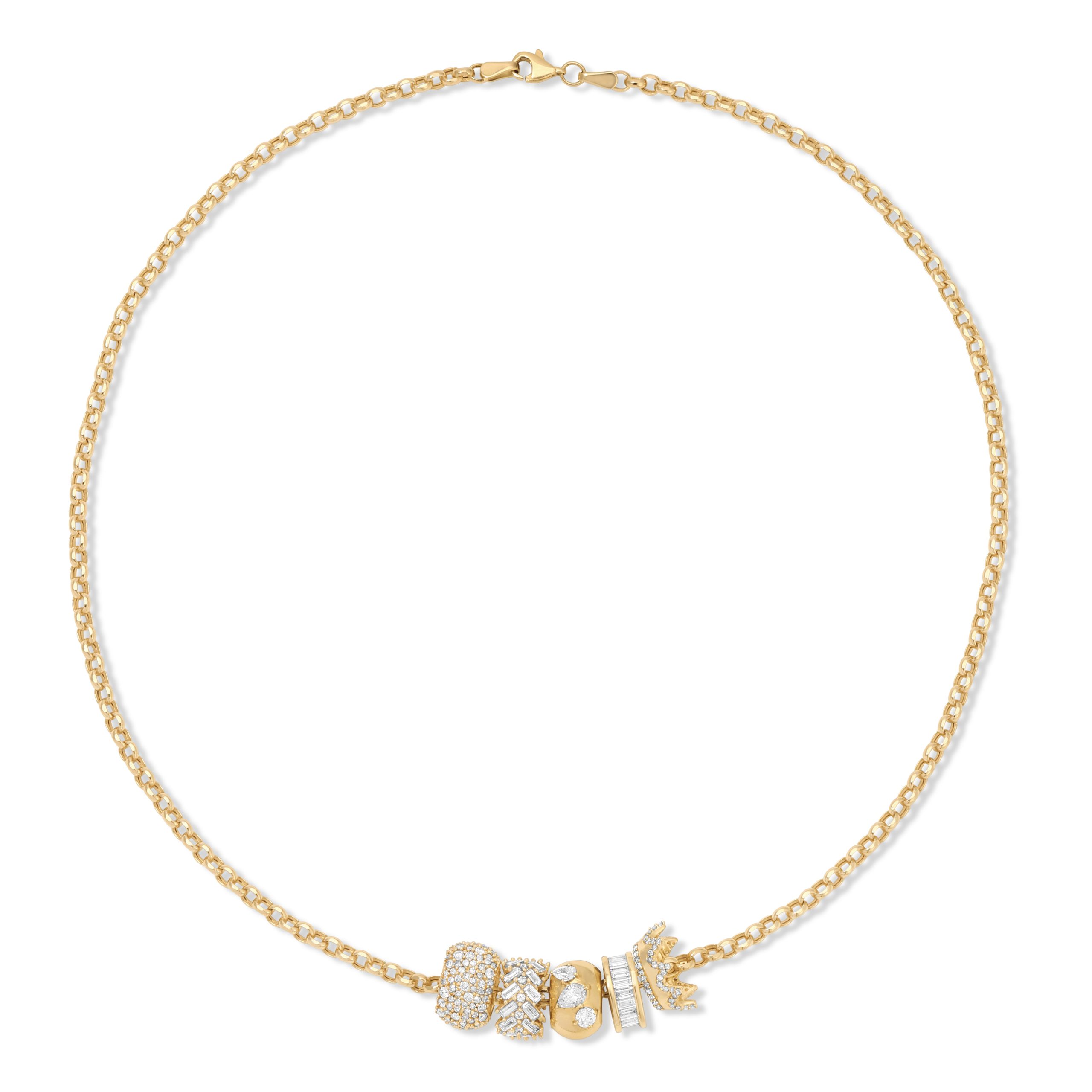 Our bestselling Rolo Chain meets a selection of Luxe Big Beads, designed and personally chosen by Adina, in a necklace that celebrates the beauty of the everyday. Each bead is meticulously handcrafted in solid 14k yellow gold and set with brilliant diamonds, from the Wide Pavé to the Diamond Chevron Baguette, Diamond Channel Set Baguette, Pavé Crown, and Diamond Pear Cluster. Designed to be worn effortlessly, it brings a touch of radiance to daily moments while offering endless ways to make it your own with additional Big Beads and Hinged Charms. We love it styled at 18 inches and layered with our 16 inch 5.3mm Italian Chain for a look that feels polished, personal, and timeless.