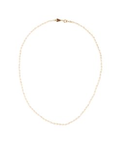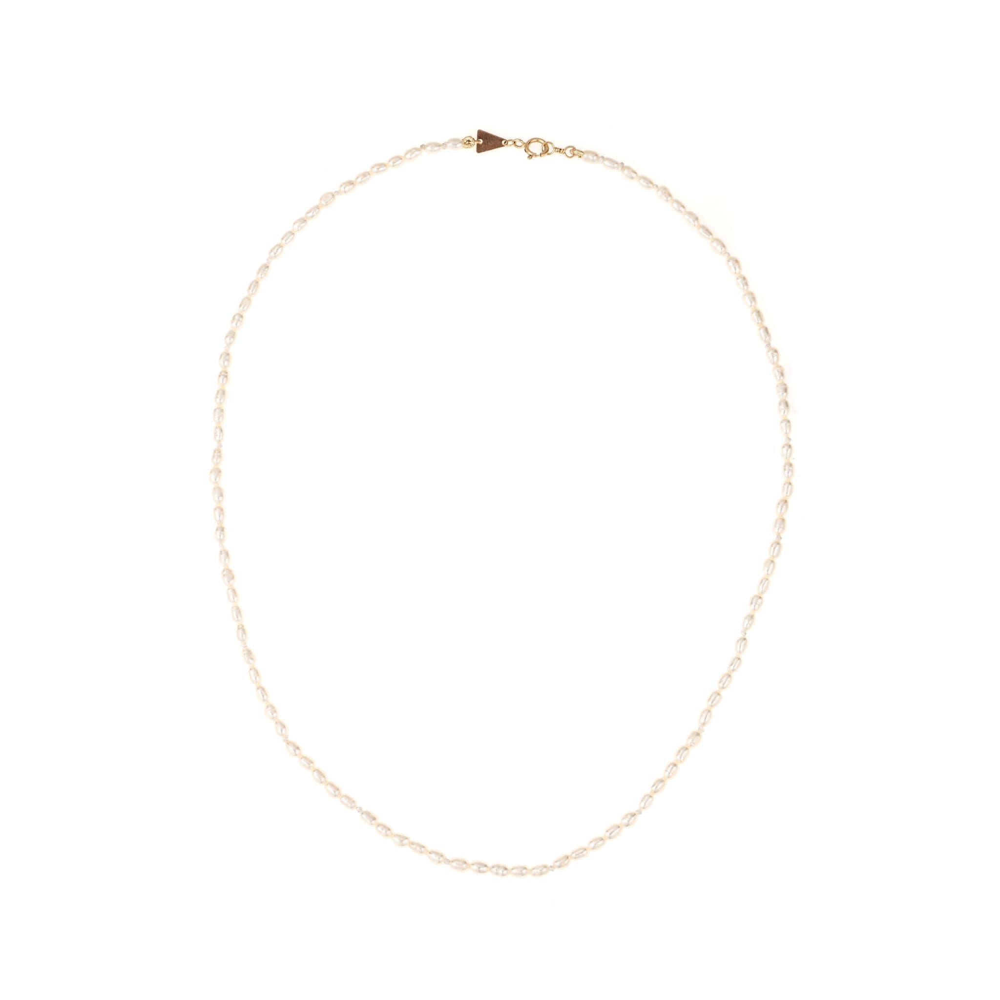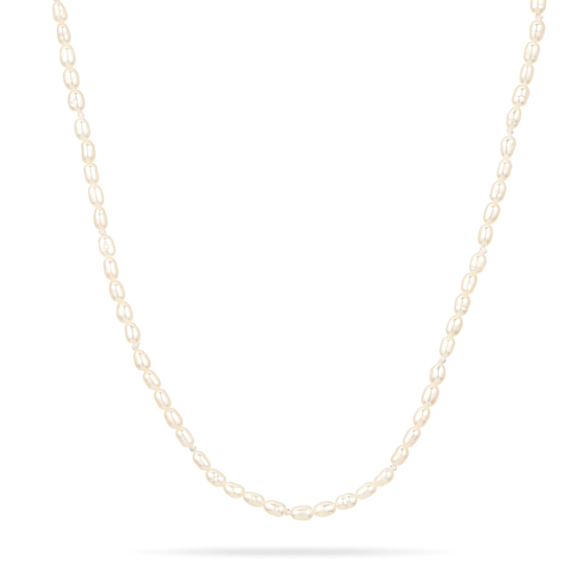 Necklace of freshwater cultured pearls with a 14k yellow gold clasp.