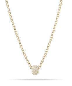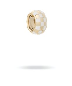 14k yellow gold big bead with white ceramic checkerboard detail.
