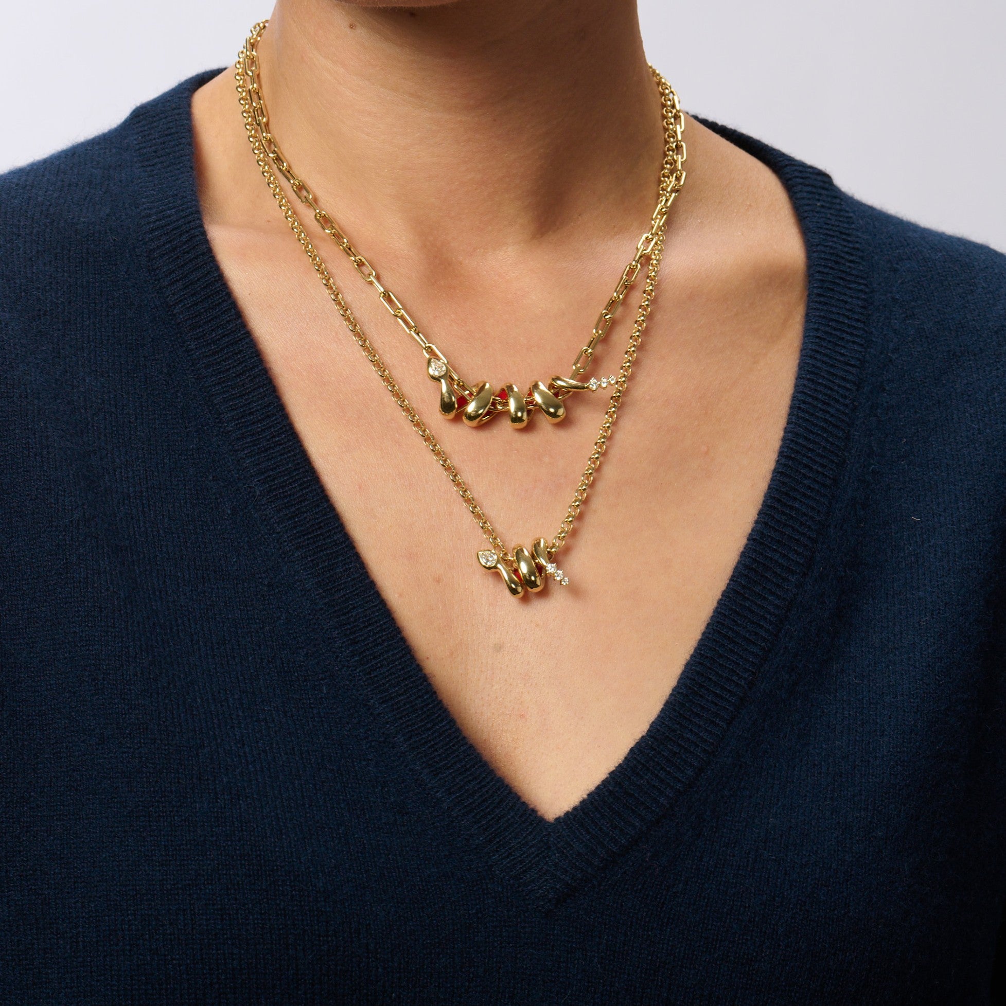 The Year of the Snake XL Diamond Wrap Big Bead celebrates the 2025 Year of the Snake. Made of 14k gold, the snake design has a red ceramic interior, and sparkling lab-grown diamonds on the head and tail. This is a truly special bead and one that looks great on its own or with other beads.