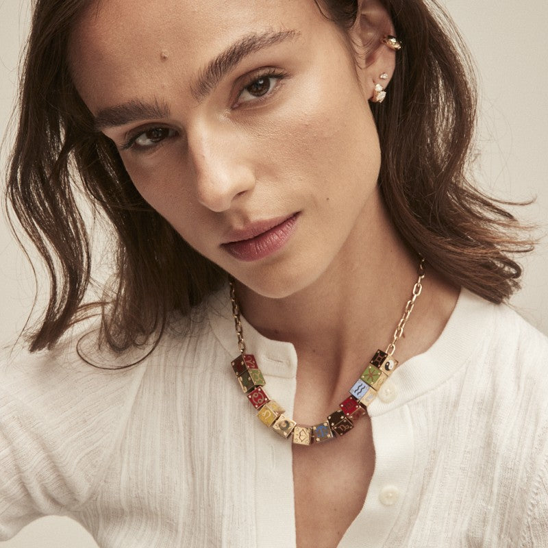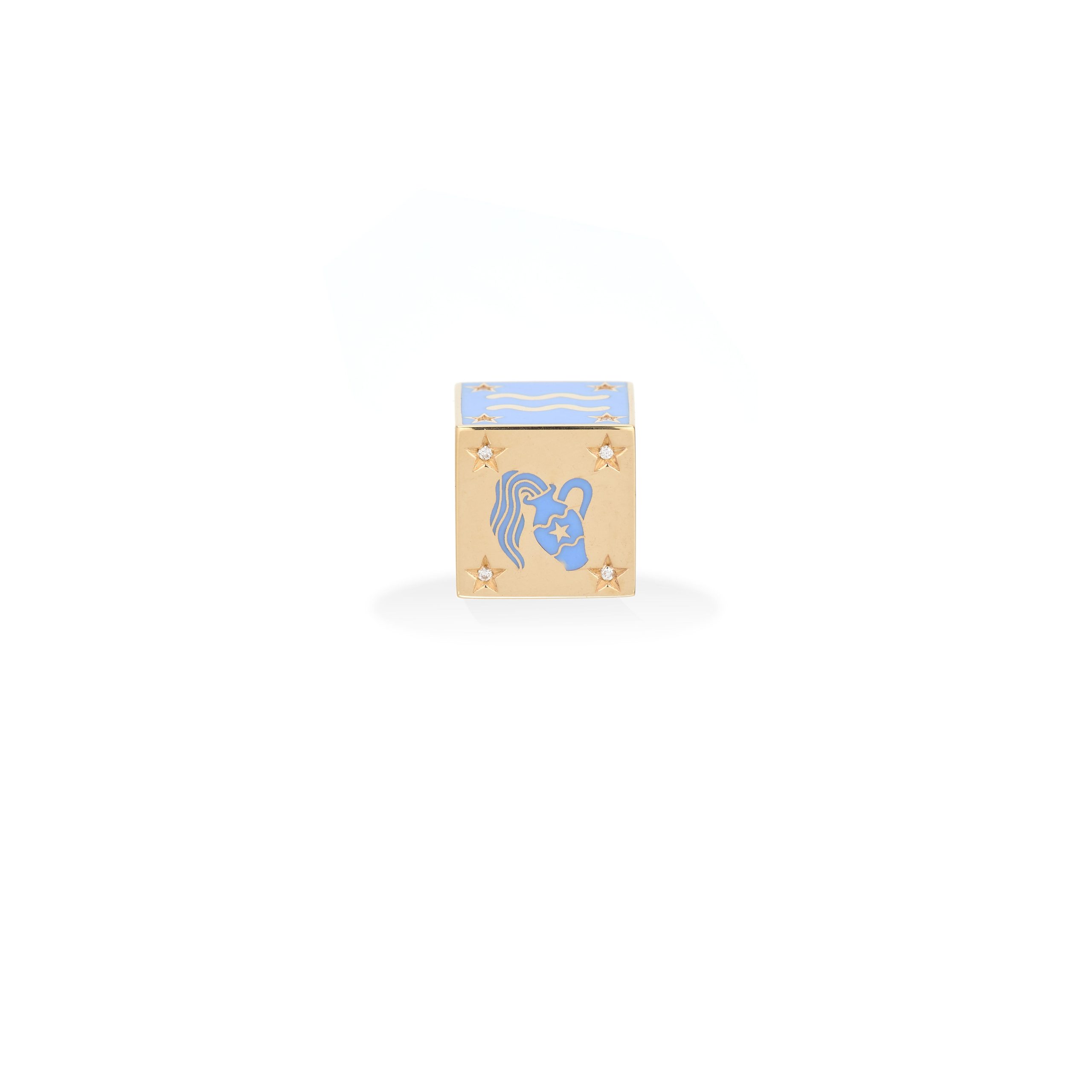 Showcase your star sign with our Zodiac Ceramic + Diamond Block Big Beads. Featuring alternating Aquarius symbols and the Water bearer icon in arctic blue ceramic and genuine 9k yellow gold, with etched diamond stars, this Big Bead bead offers a personalized touch that celebrates your unique zodiac sign. We love this Big Bead paired with our bestselling 4mm Italian Chain.
