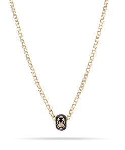 14k yellow gold and black ceramic bead with the Cancer symbol and constellation, embellished with hand-set pavé diamonds.