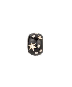 14k yellow gold and black ceramic bead with the Leo symbol and constellation, embellished with hand-set pavé diamonds.